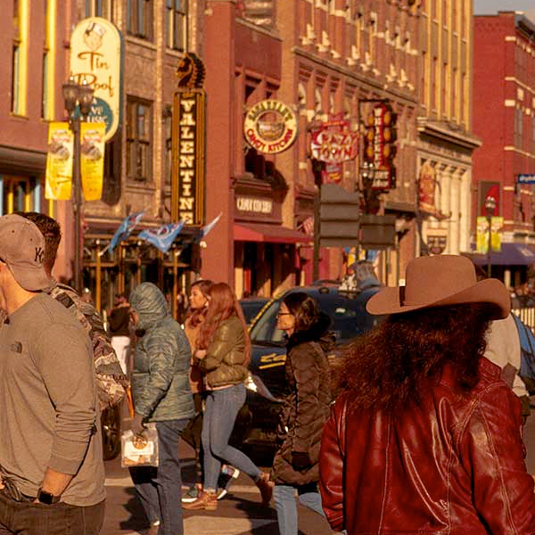 Riverside walks through the art district atop a bluff and Civil War battle monuments atop Lookout Mountain. From here take I-24 over Mont Eagle Mountain straight to Nashville or take a detour along the foothills of the Great Smoky Mountains to find Pigeon Forge, America’s factory outlet mall capital and home to Dollywood, Dolly Parton’s family fun park. Drive up to Newfound Gap for the classic hazy, purple-tinged view of the Smokies, the most popular National Park in the US. Point your car west on Interstate 40 for the 180-mile cruise to Nashville.